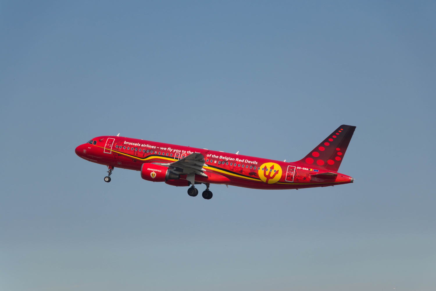 Trident on the other hand remains dedicated to one of Belgium’s most popular sports: soccer. The popular livery will receive a partial repaint on the outside as well as an updated interior. As of 25May 2021, the aircraft with registration number OO-SNA will fly around with portraits of both the Red Devils and the Red Flames on the inside until it leaves the Brussels Airlines fleet in November 2022.